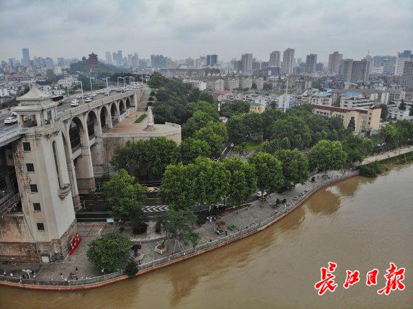 13日7时许,武昌平湖门附近堤防及水位状况。