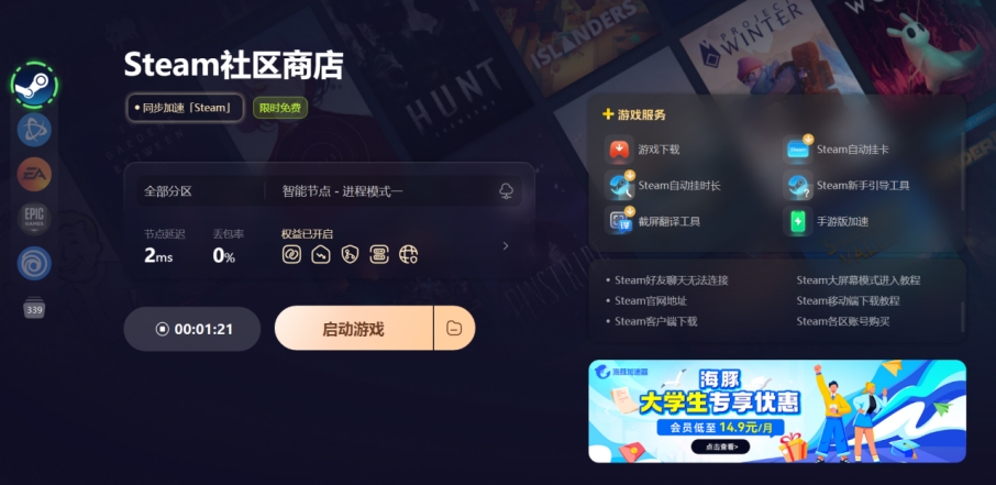 若前两种方法无效,玩家可尝试使用海豚加速工具。海豚能有效优化网络连接,减少网络延迟,从而帮助玩家更顺畅地访问Steam商店。通过海豚加速后,再次尝试打开Steam商店,往往能解决问题。