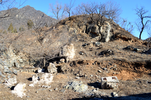 1621年(明天启元年、金天命六年),后金兵攻破辽阳,明朝就停止对北京房山县金代诸陵的享祀。天启二年,又尽毁金代诸陵,断绝水脉,剥案山之皮以坏风水。三年,又在金陵废墟上建关帝庙以镇压之。这虽是出于魏忠贤的命令,但从中可以看出汉人对金和女真旧怨之深,深怕其后裔再统一中国。下图北京房山金陵遗址。