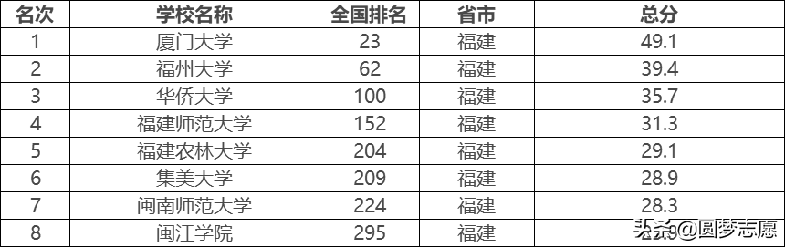 由此可见,福建省名牌高校中,厦门大学和福州大学分别稳居前二,而福建师范大学则保持第四。