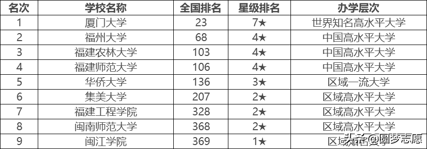 二、2020福建名牌大学排名