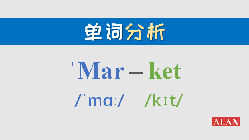 讲完了每个音节发音之后,我们把这两个音节的发音都组合起来,mar-ket,最后不要忘了重读音节在第一个音节上,要读重一点哦?