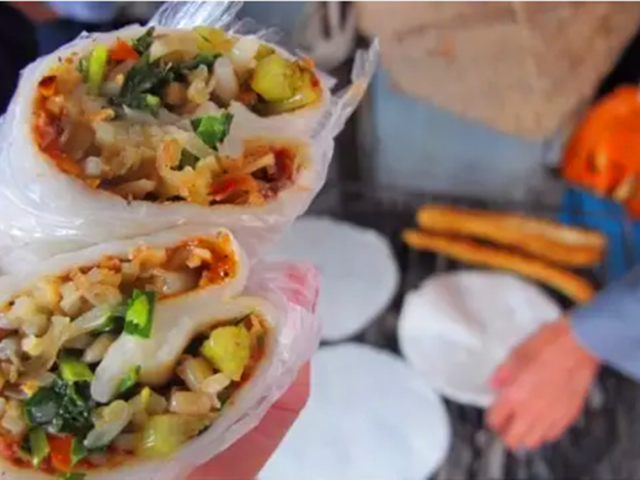 烧饵块是个“有料货”,肉酱、洋芋丝、豆芽还有腌菜一起裹进饵块,料超级足。