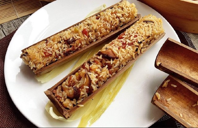 香竹饭是用西双版纳一种本身会散发香味、像青笋一样粗细的竹子做的。