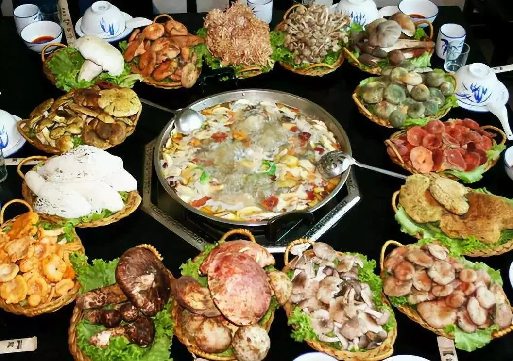 楚雄野生菌火锅是云南六大名吃之一,食材生态、味道鲜美,是无数食客的最爱。鸡枞、松茸、牛肝菌、鸡油菌、老人头、竹荪等近30种野生菌不仅可以煮在火锅里面吃,还可以根据顾客喜好做成炒菜。