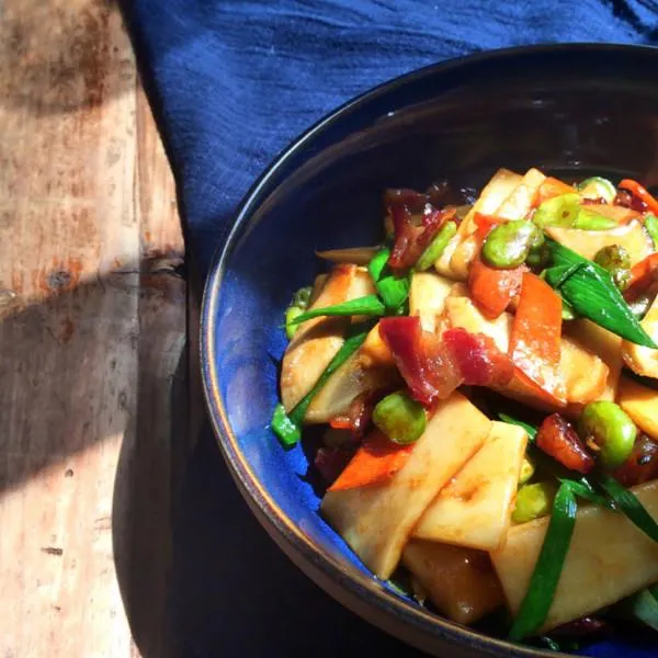 炒饵块既能当做主食,也能当做佐食,加入各种蔬菜一同炒制,酱料的咸香与饵块自身的清甜,味道很有层次感。