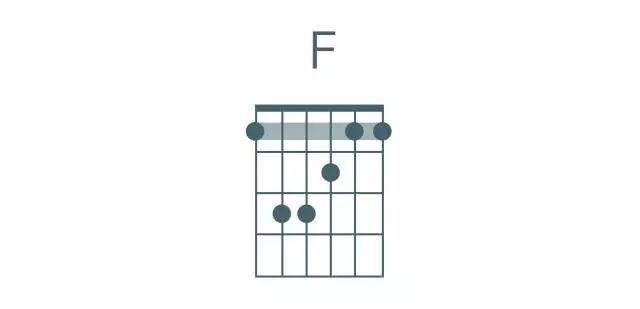食指放在2弦的第一品上,中指放在4弦的第二品上,无名指放在3弦的第二品上: