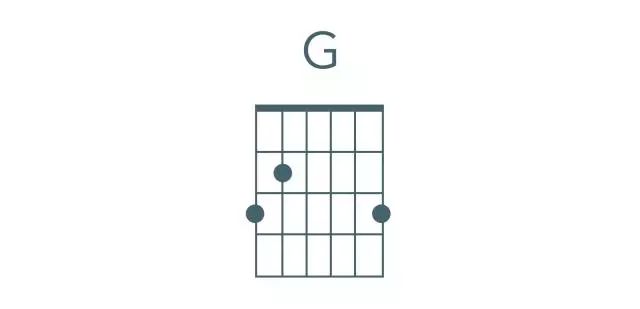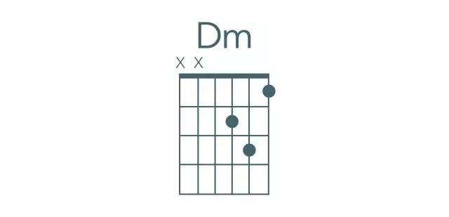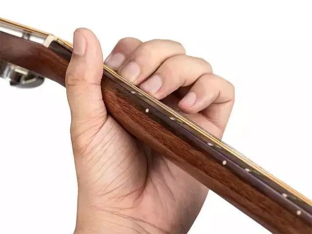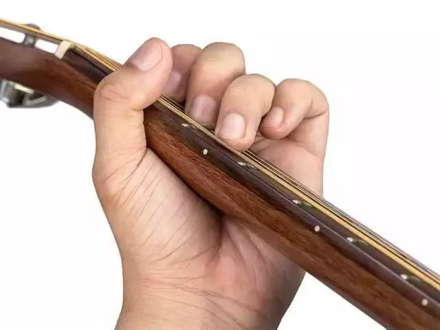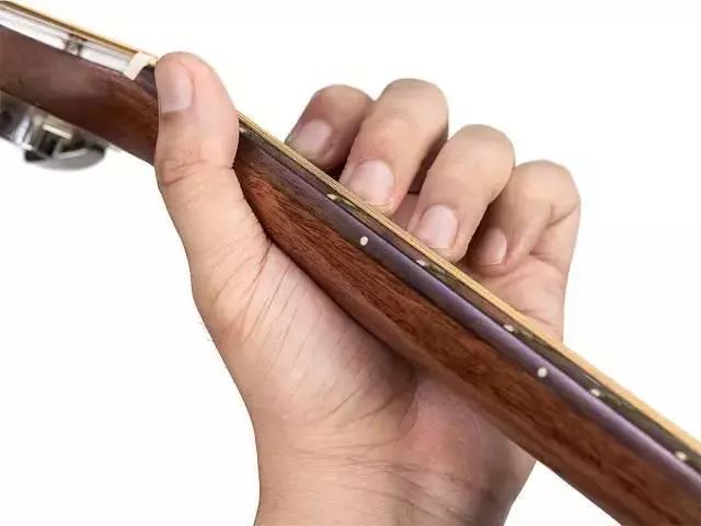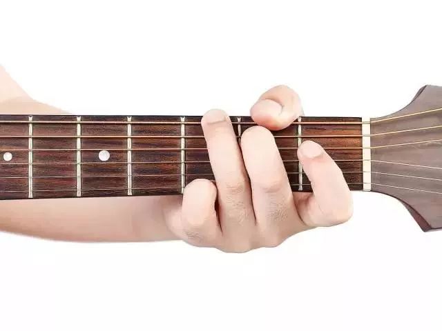 食指放在2弦的第一品上,中指放在4弦的第二品上,无名指放在5弦的第三品上: