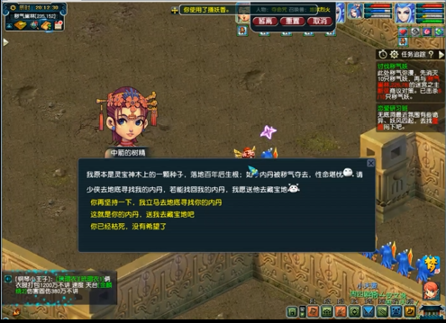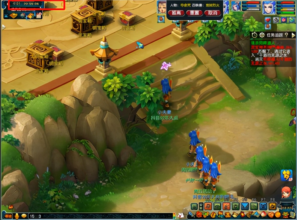 小编备注:一般我们会在8点40分及9点42分左右,地面上的箱子已经成型足够多了。这个时候大量的箱子当中会包含翡翠宝箱(开宝箱顺序:翡翠>金>银>铜),而帮助树精找回内丹,即可提前进入清风密林比他人优先一步开启翡翠宝箱,如果这个时候没有翡翠宝箱,大家可以考虑先开银宝箱。