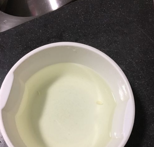 第三步:把锅洗干净,把之前调的糖水倒入,用勺子不停的搅拌,熬制成麻黄色,