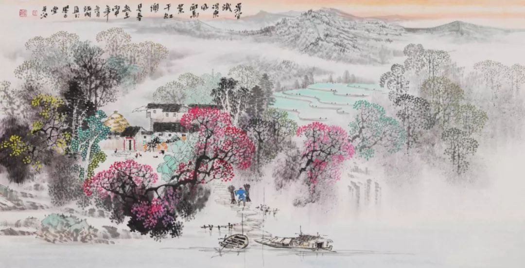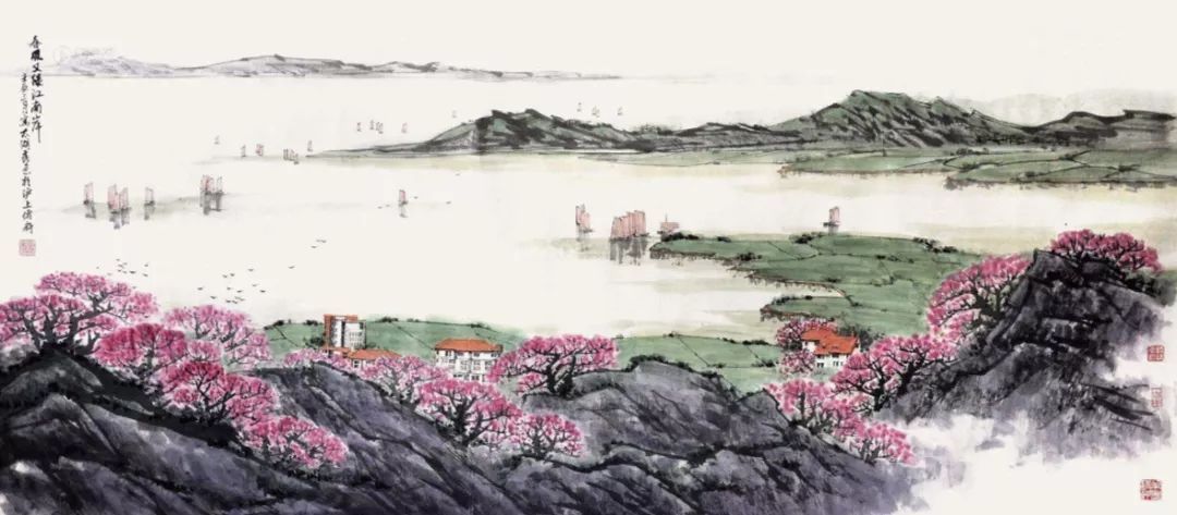 这是北宋文学家王安石七言绝句《泊船瓜洲》中的后两句,全诗借景抒情,寓情于景,表达了对故乡的依依不舍和思念之情。据说“春风又绿江南岸”中的“绿”字,诗人改了十几个字,“到”、“过”、“入”、“满”等都用过,都觉得不好,最后才定为“绿”字,这也成为我国古代文学史上讲究修辞炼字的范例。