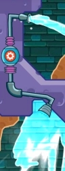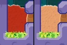 2、挖开泥土,用清水触发蓝色开关,这是右边污水流下,分流一小部分清水收集最后一直鸭子,然后马上让左边污水流下来,这样污水就不会被红色风扇吸进来污染清水了,风扇被关掉后,清水落下即可过关。