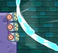 1、拖动蓝色挡板,注意不要让风把水球吹到荆棘上;