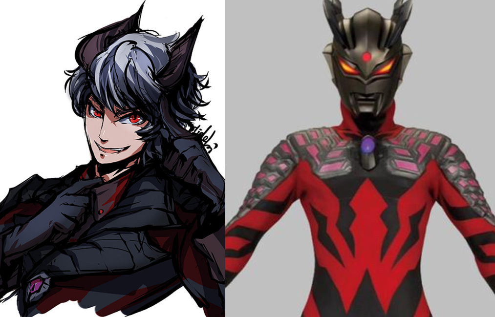 被贝老黑上身变成的黑暗赛罗形态,拟人化形象也是从小奶狗变成了小狼狗。和原版赛罗对比,黑暗赛罗全身换上了黑色的夹克,眼神也更加邪恶了,多了一分贝利亚狂放不羁的感觉。其实整个头只是变换了眼神,却给我们完全不同的感觉!