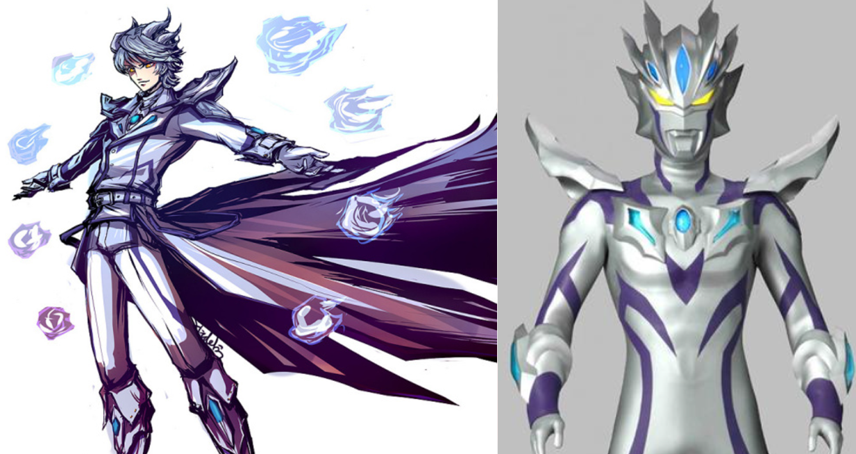 光辉赛罗也是赛罗的最强形态之一,画师巧妙地将光辉赛罗的拟人形象画成了黑暗赛罗的对立面。一个代表黑暗,一个代表光明,一个代表绝望,一个代表希望。这样的设计用作插画估计都可以了!简直帅炸了!