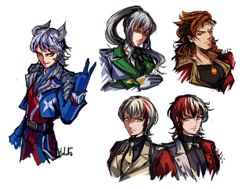 虽然很久没有登场了,但是既然老大哥赛罗已经变成了真人,那么终极赛罗警备队的其他兄弟也顺理成章得被画师画成了真人。图中分别是红莲火焰、镜子骑士、詹伯特、詹奈,几个特摄英雄的特色都得到了保持,和赛罗站在一起也是CP感满满!