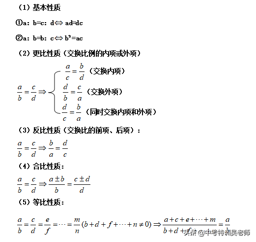 若四条a,b,c,d满足a/b=c/d或a:b=c:d,那么a,b,c,d叫做组成比例的项,线段a,d叫做比例外项,线段b,c叫做比例内项,线段的d叫做a,b,c的第四比例项。
