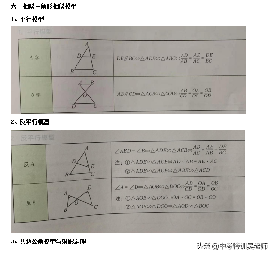 ③两角定理:如果一个三角形的两个角与另一个三角形的两个角对应相等,那么这两个三角形相似,两角对应相等,两三角形相似.