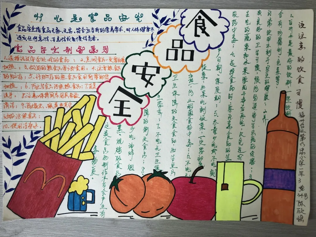 收集到的手抄报作品主题鲜明,色彩明快,内容翔实,体现了师生对食品安全的重视和深刻理解。