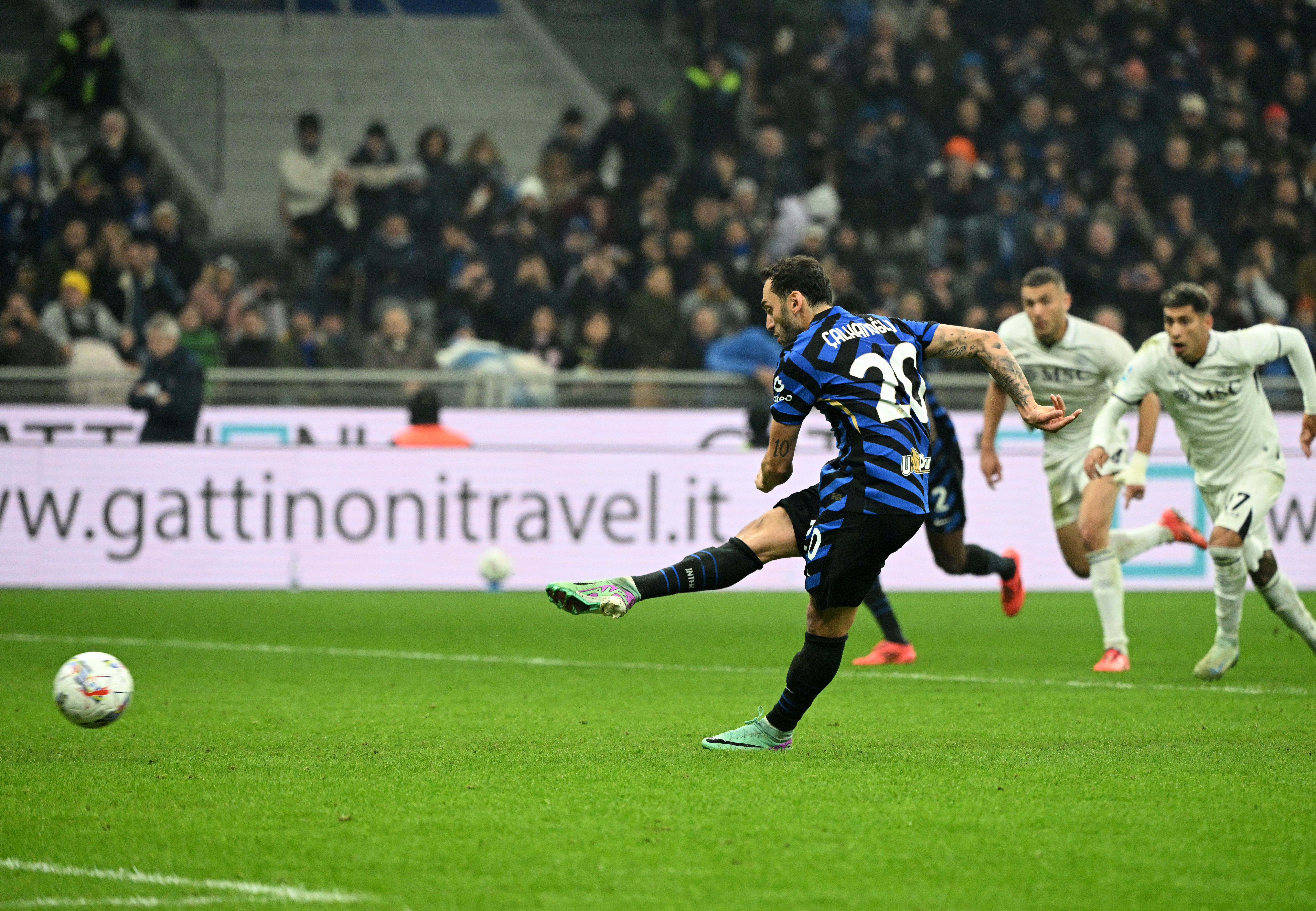 比赛伊始,两队都制造了不错的射门机会,国米攻势略胜一筹,但那不勒斯利用一次角球机会拔得头筹。第23分钟,客队角球开出,拉赫玛尼前点将球传给麦克托米纳,后者近距离将球打进。上半时尾声,恰尔汗奥卢接巴斯托尼的传球,禁区外以一粒精彩的超远距离世界波破门,扳平比分。
