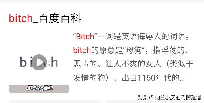 我先来解释一下&34;碧池”一词的由来。源于英文单词“bitch”[发音类似于“碧池”],词意是侮辱性的骂人话。