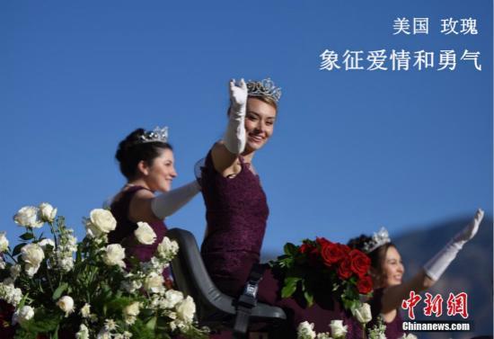 资料图:玫瑰。图为当地时间2019年1月1日,第130届美国玫瑰花车游行在加州帕萨迪纳市举行。中新社记者 张朔 摄