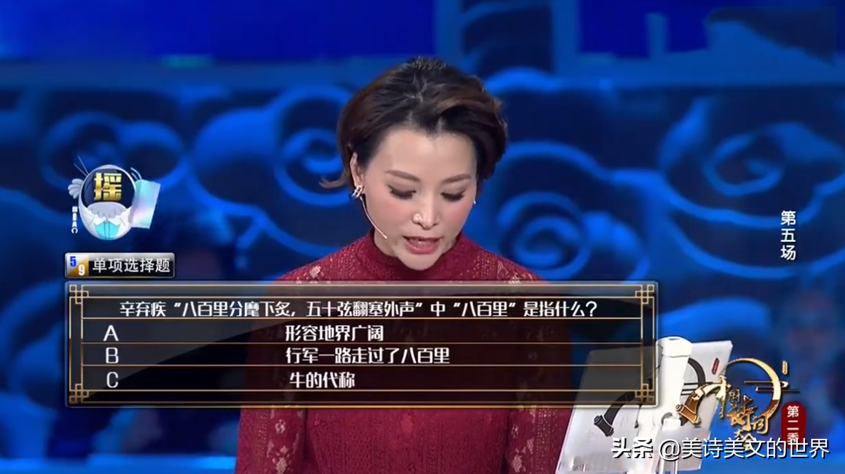 上面这三个词语的解读,在诗词大会都曾考过,不过当时现场却有很多选手答错。当然这样的问题并不仅限这一首《元日》,很多课本中曾经学过的古诗词,在诗词大会的节目考到的时候都有很多选手答错,就像笔者本期要介绍的辛弃疾的《破阵子》,“八百里分麾下炙”中“八百里”到底何意?