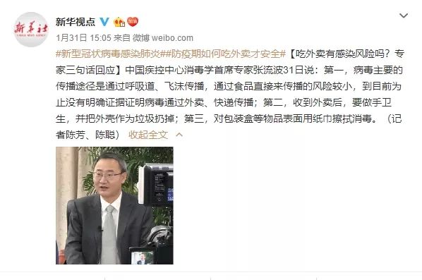 另外,对于在家收发快递、拿外卖等事情,中国疾控中心消毒学首席专家张流波表示: