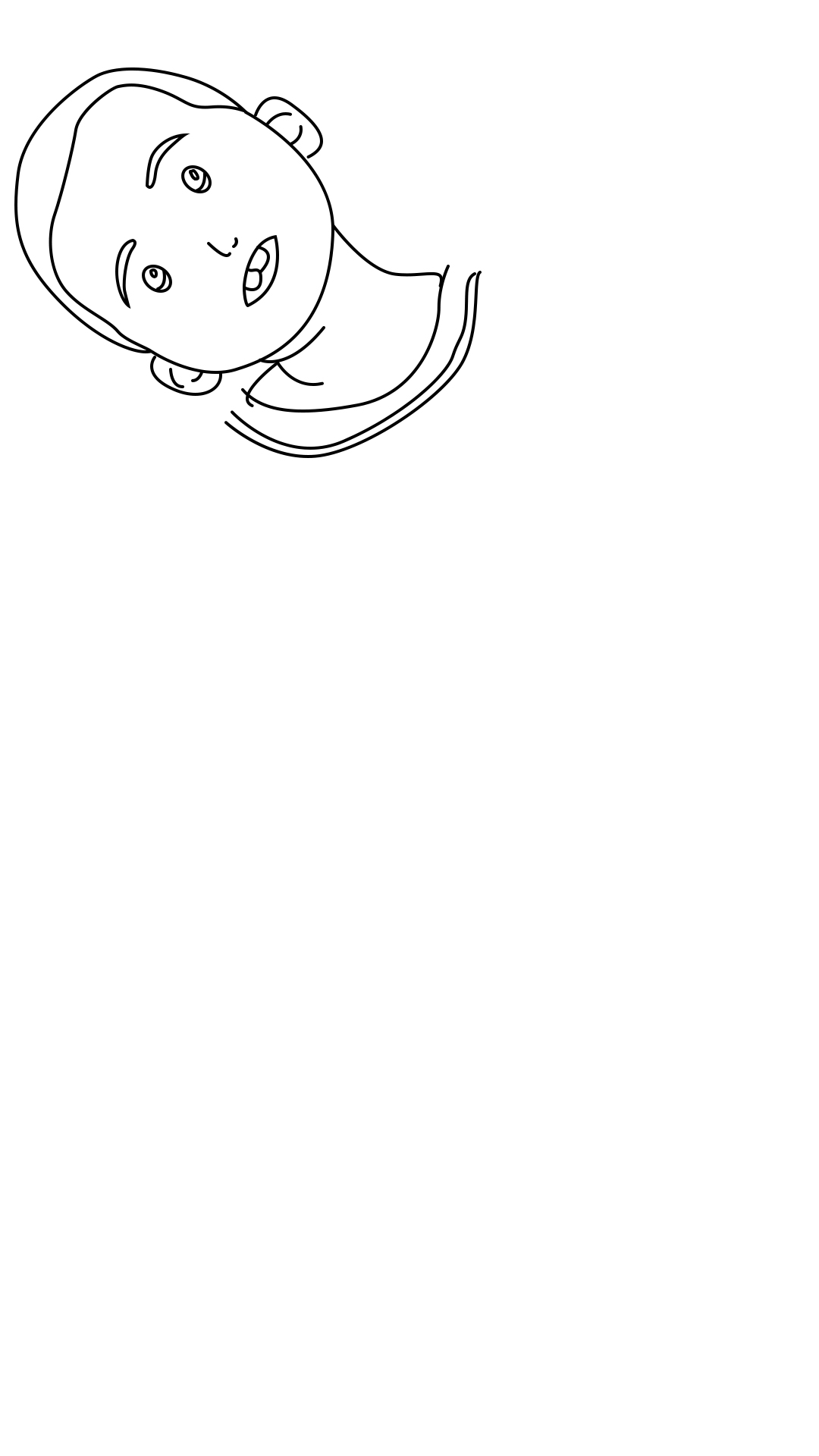 第一步:画一个歪着的不那么圆的椭圆形,不用那么的标准哈啊,太标准了好假的感觉,再区分出头发的位置,五官很简单,随便你画,