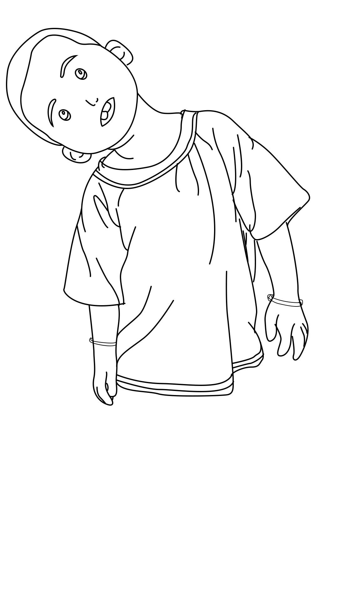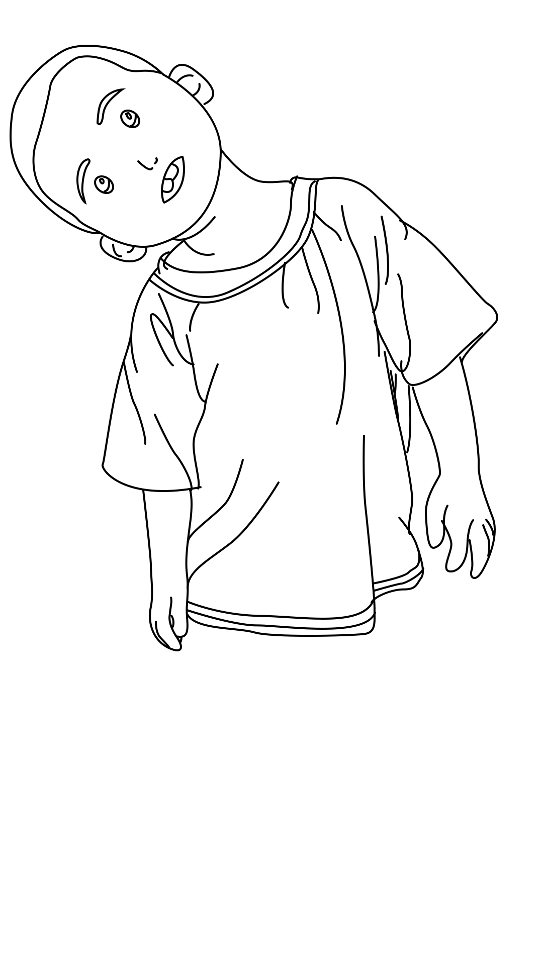 第三步:衣服是圆领的,三条弧线就搞定了