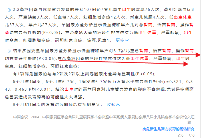 2004年中国康复医学会研究发现:出生时孩子低出生体重会影响智力发育水平。