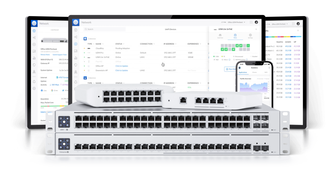 UniFi OS 上支持所有 UniFi 应用程序,包括:UniFi Network 网络、 UniFi Protect 监控、UniFi Talk 电话、UniFi Access 门禁和 UID。 一个网管平台,满足您企业的全部 IT 需求!