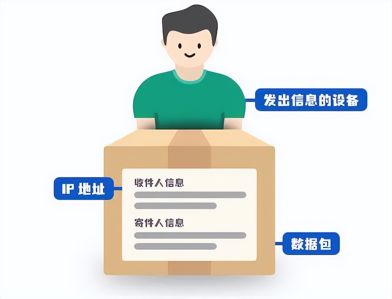 包裹上的收件信息相当于 IP 地址,那个来取快递的小哥就是你连接的交换机。