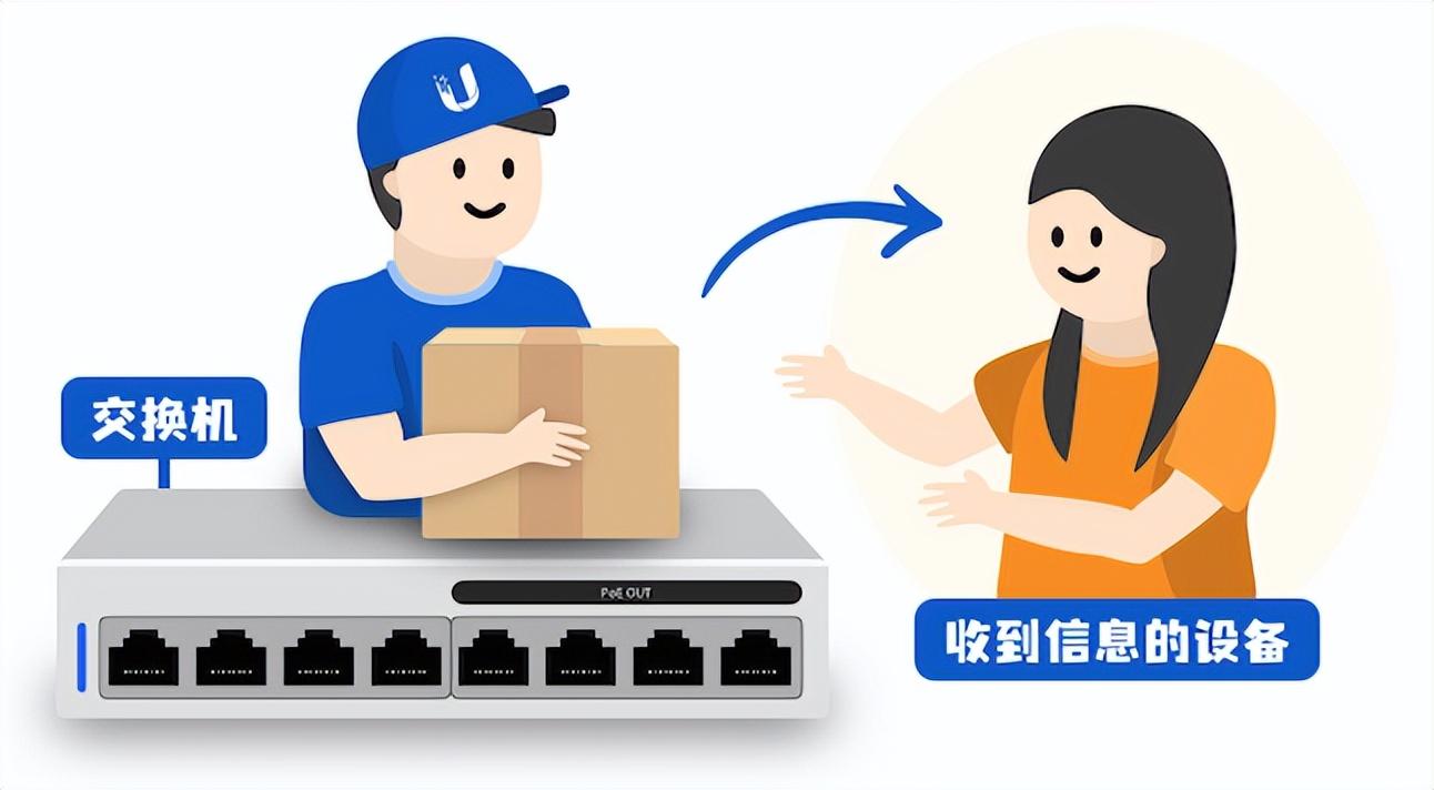 交换机发现数据包的地址不在运送范围内,就会将它转发给路由器,就像快递小哥把包裹送到附近的快递中转站那样。