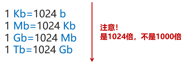 bit是一个很小的单位。通常,一张图片的大小,就有40000000bit。所以,为了方便,我们就创造了更大的单位:b、Kb、Mb、Gb、Tb。(就像长度有毫米、厘米、分米、米一样。)