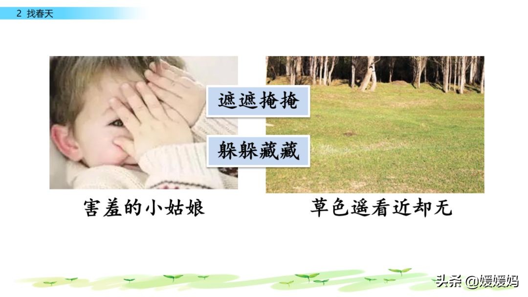 春天像个害羞的小姑娘,遮遮掩掩,躲躲藏藏。我们仔细地找哇,找哇。