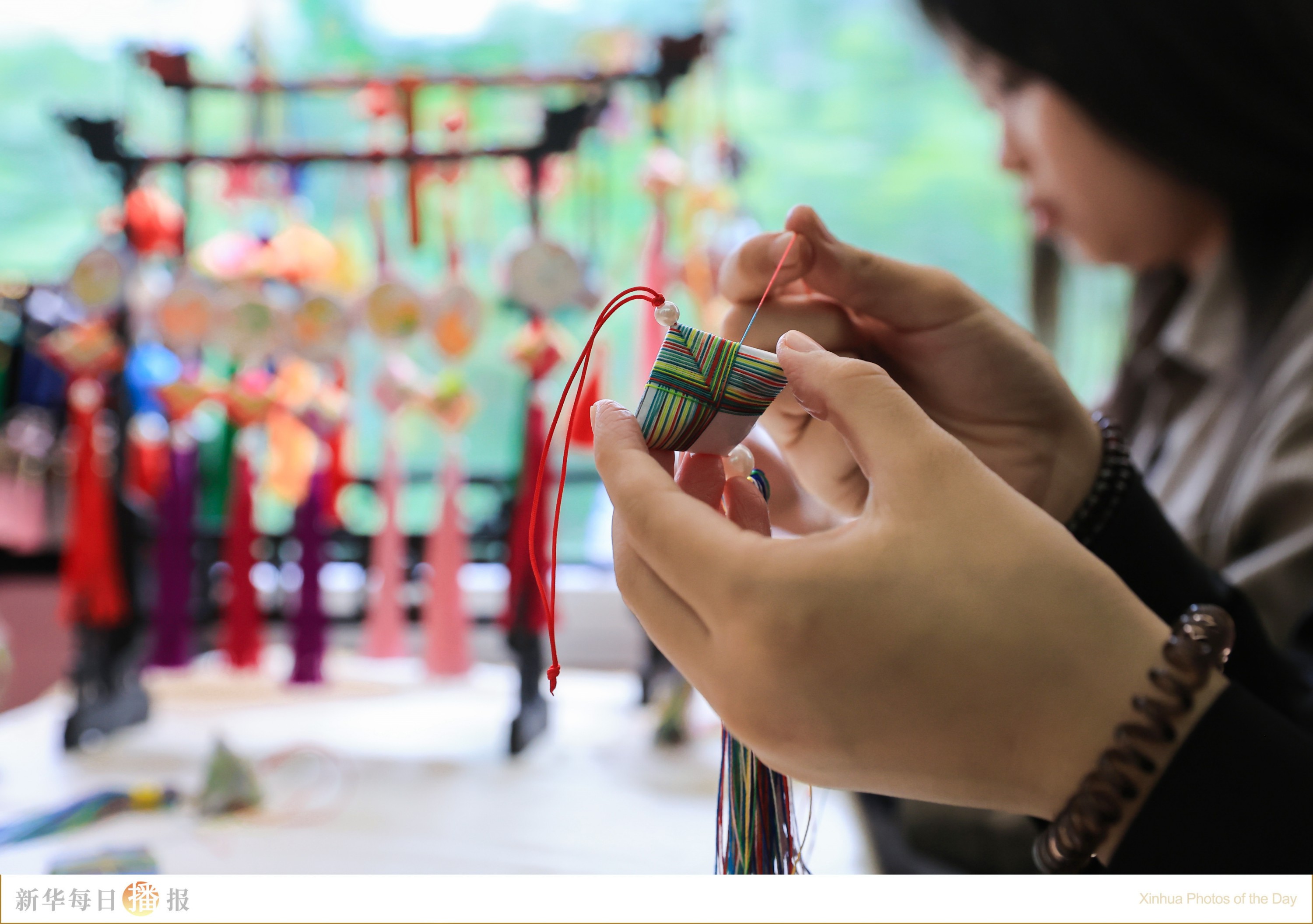 6月5日,在G7393次列车上,旅客体验制作端午彩粽。当日,一场迎端午主题活动在G7393次列车上举行,民间艺人在高铁列车上展示端午彩粽的制作并邀请旅客互动体验,让旅客在旅途中感受传统民俗文化,喜迎端午佳节。