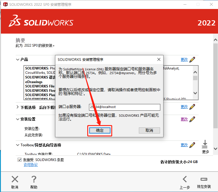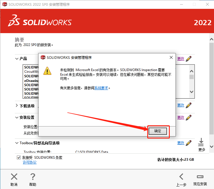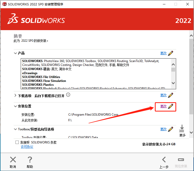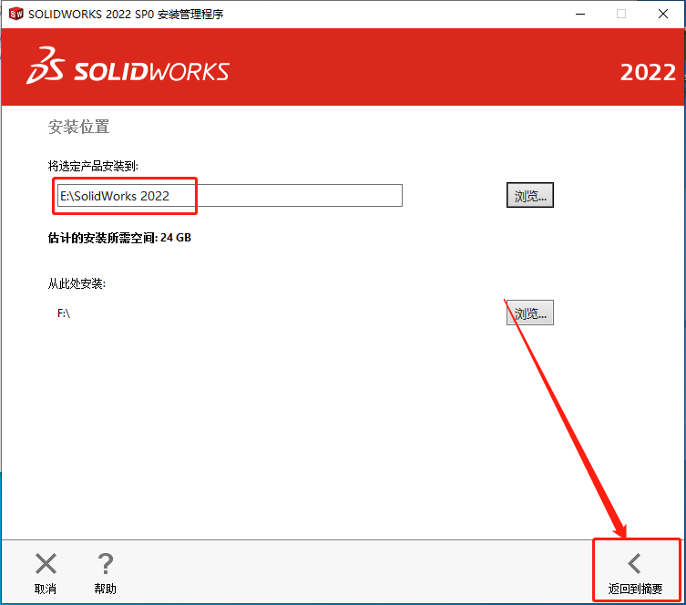 24.建议安装在除C盘以外的磁盘,教程中选择安装到E盘中新建的【SolidWorks 2022】文件夹,选中新建的文件夹后点击【选择文件夹】。