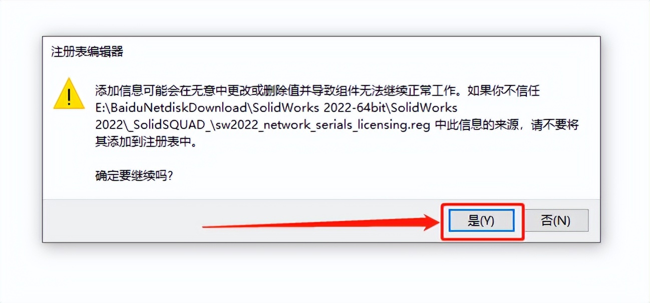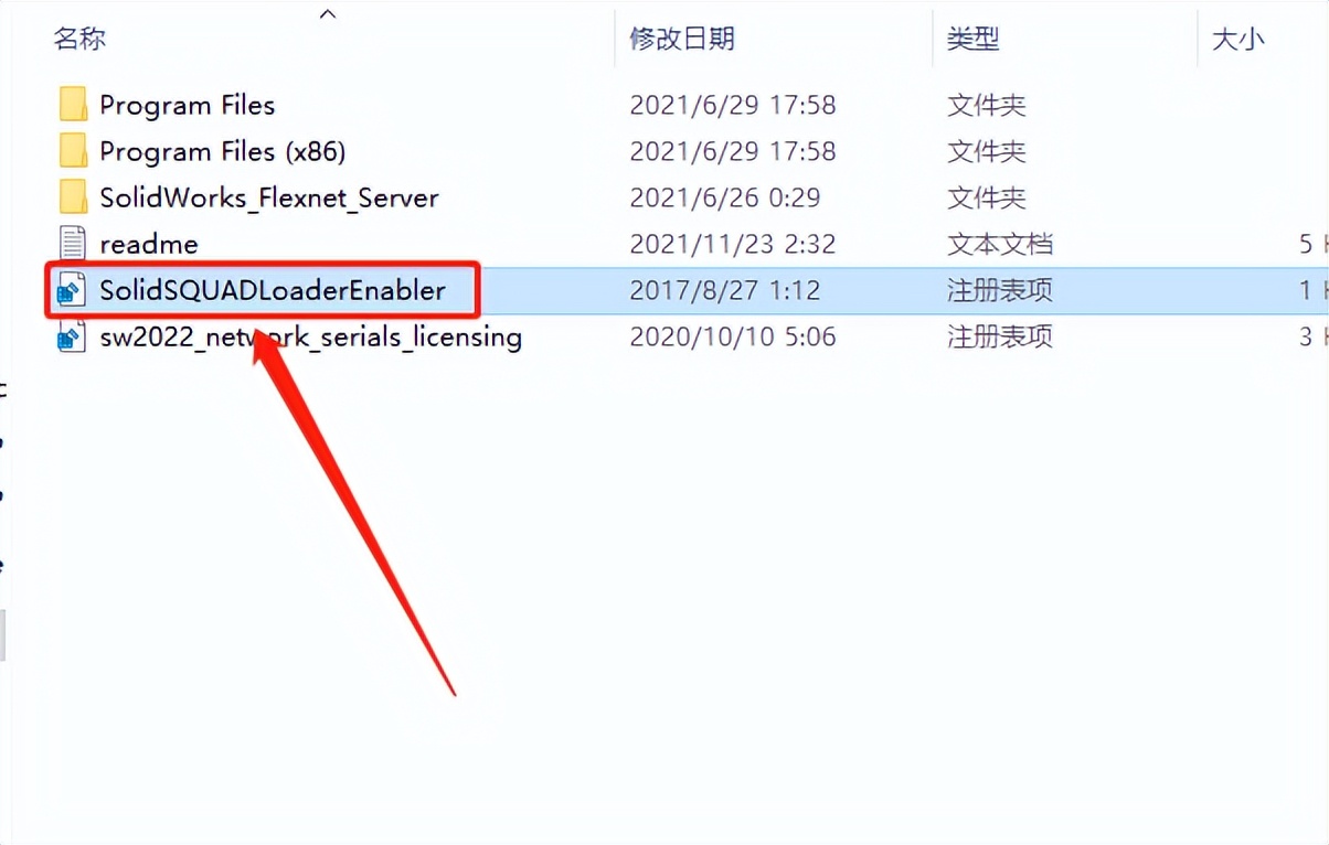 5.双击打开【sw2022_network_serials_licensing】注册表文件。