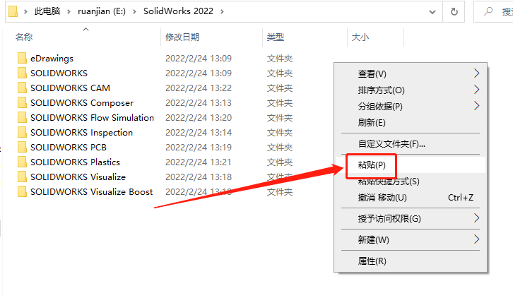 36.接下来打开软件的安装路径(参考第22-24步),打开【Solidworks 2022】文件夹。