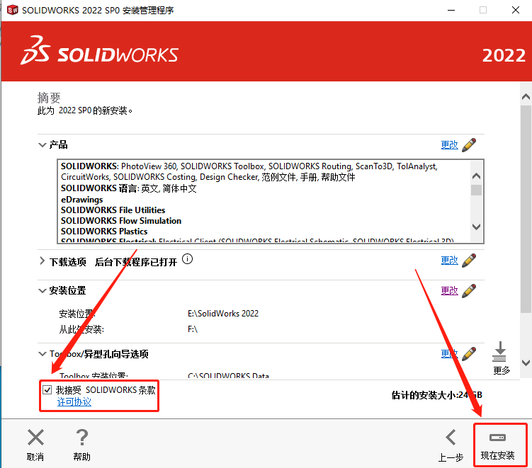 26.勾选【我接受······条款】,然后点击【现在安装】。