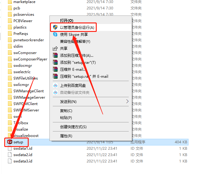 17.鼠标右击【setup】安装程序,选择【以管理员身份运行】。