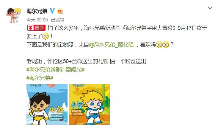 海尔兄弟新动画将上映即将上映,看了官方公布的兄弟二人的定妆照,网友大呼:穿上衣服居然不认识了!