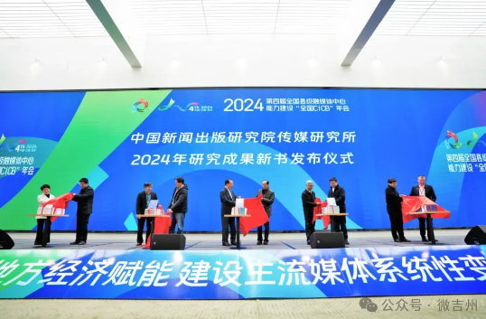会上还举行了中国新闻出版研究院传媒研究所2024年研究成果新书发布式,分别是《县级融媒体的“四梁八柱”》《中国传媒融合创新研究报告(2023-2024)》《中国传媒社会责任研究报告(2023-2024)》《全国县级融媒体创新发展研究报告(2023-2024)》《融媒体发展十年洞见》。周锡生、翟惠生、陆先高、张天清、张晓明、周蔚华、周勍诚、刘向鸿、施春生、朱树青等领导嘉宾为新书揭幕。