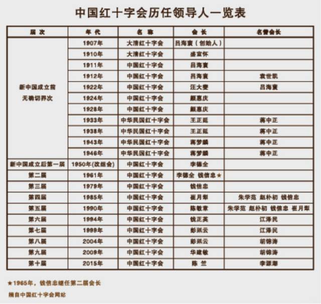 从《一览表》中,我们可以看到:中国红十字会诞生后,先后4次更名,14名会长都是由政府要员担任,名誉会长多由国家领导人兼任,充分体现了政府对红十字工作的重视和支持。