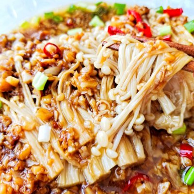 这款蒜蓉金针菇真的超级下饭!金针菇裹满着酱汁,味道浓郁,超级好吃!