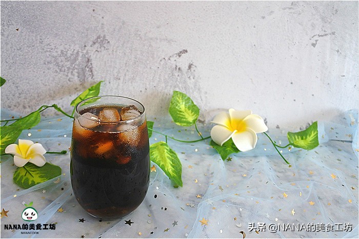 4. 杯中放入冰块,倒入煮好的花茶水即可