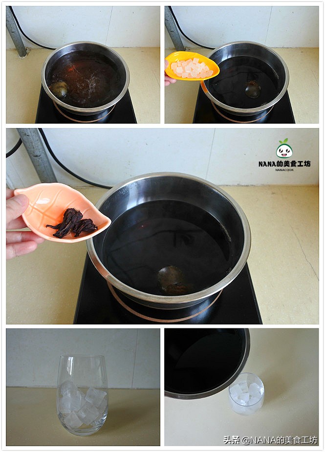 罗汉果本身自带甜味,所以冰糖你自己看着放,若是你觉得甜度已经足够就可以不另加糖。洛神花有些酸酸的,这样搭配起来酸甜冰爽,很是过瘾?