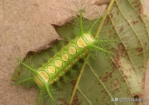 洋辣(二声)子,大磊子一提这名字,估计就有不少人回想起小时候的疼痛回忆。这玩意,也有人管它叫会会儿,如果不小心让这玩意蜇了,那叫一个疼!而且一疼就是好几天,火烧火燎的,简直是活受罪!这玩意其实就是刺蛾科的幼虫,种类非常多,基本都是吃叶子,算是害虫的一种。这玩意发育变成成虫后,就是北京人俗称的“扑棱蛾子”。