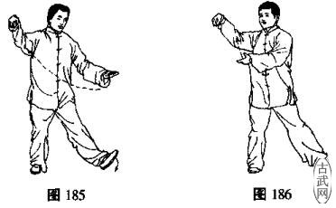 前推的手臂微屈,后撤的手随转体走弧线;前推时要转腰松胯,两手的速度要一致;转体时前脚以脚掌为轴扭正;退左脚略向左后斜,退右脚略向右后斜,避免使两脚落在一条直线上。